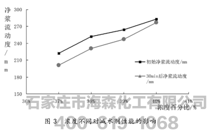 聚羧酸减水剂的性能的优异情况。浓度不同条件下合成的