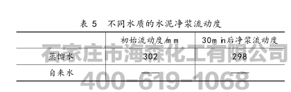 聚羧酸减水剂的性能造成影响。实验结果如表5。