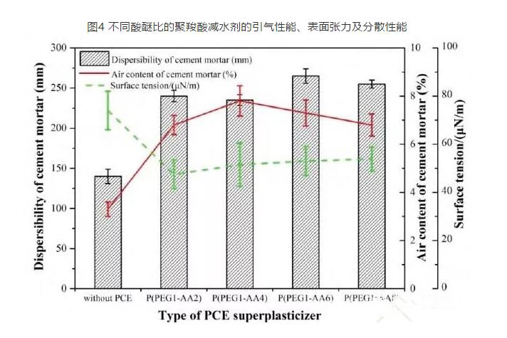 2.1 不通酸谜比的聚羧酸减水剂的引气性能及其分散性能
