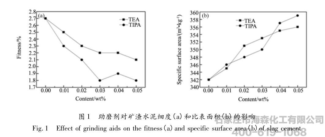 (1)助磨剂对矿渣水泥颗粒特性的影响