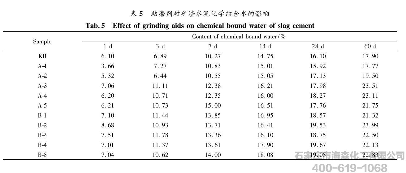 (4) 助磨剂对矿渣水泥化学结合水的影响