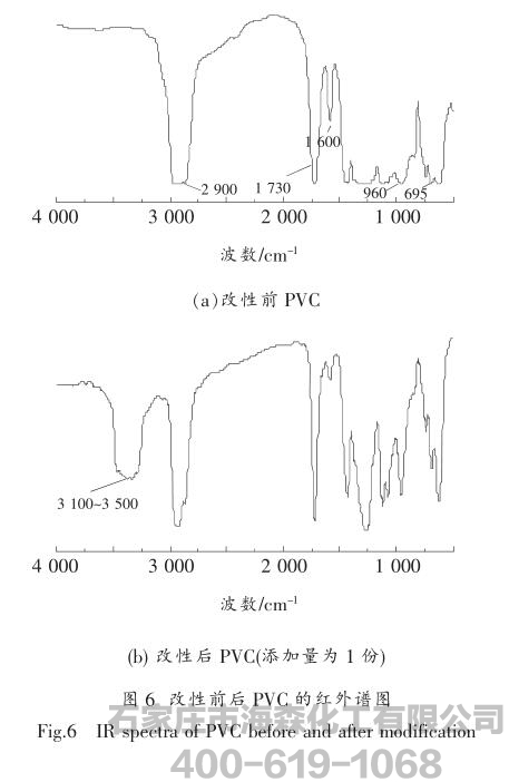 三乙醇胺改性PVC,改性前后材料的红外谱图如图6所示。