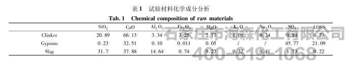 试验用原材料化学成分见表1,其中石膏为二水石膏。