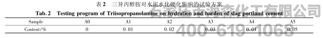 三异丙醇胺对水水化硬化的影响,设计了表2方案。