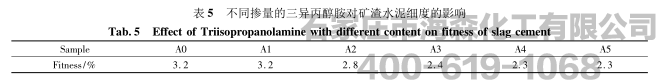 三异丙醇胺可以提高矿渣水泥的强度,并且对3d和28d强度都有很好的提高,以0.03%为宜;