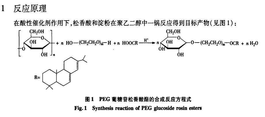 聚乙二醇葡糖苷松香酸酯的工业化生产提供了技术基础数据,新产品有望在食品等相关领域中得到应用。