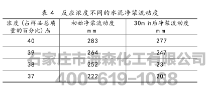 聚羧酸减水剂的性能的优异情况。浓度不同条件下合成的