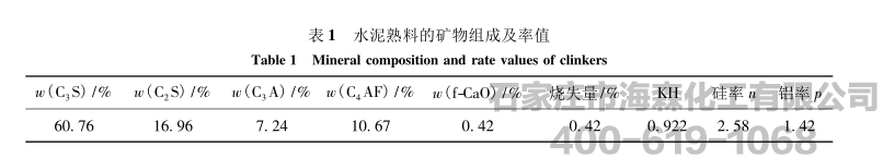 三异丙醇胺(TIPA)购自Sigma公司。熟料及二水石膏取自无锡天山水泥有限公司,熟料矿物组成及石灰石饱和系数(KH)见表1。