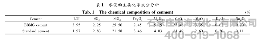 选用水泥为金隅和基准P·O42.5其主要化学组成见表1。