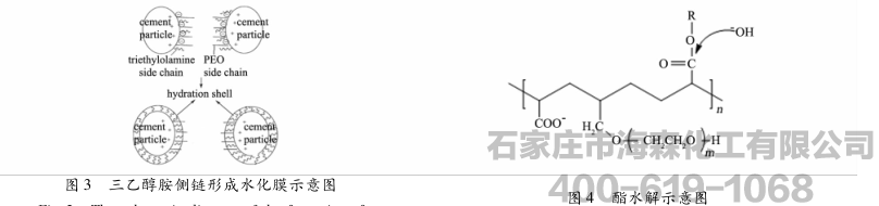 三乙醇胺侧链形成水化膜具有一定的滑移能力,分散能力增强,因为碱性条件下酯键水解,羧酸根释放,再次吸附。