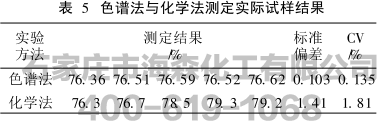 把辽阳石油化工厂提供的试剂,按选定的配比条件配成5个试样,在最佳色谱条件下进行色谱分析,5个试样、每个试样平行实验测5次,测出