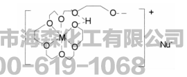 聚乙二醇400链节可以折叠成螺旋状并自由滑动的链,如下图。其中氧原子位于内侧,形成7~8个氧原子处于同一平面的假环状结构,而其余氧原子则弯曲于平面的一侧,能够与反应试剂中的碱金属或碱金属阳离子生成稳定配合物,溶于有机相中,从而使亲核试剂Nu-裸露,使之具有较高反应活性,同时从水相转移到有机相中,形成目标产物。