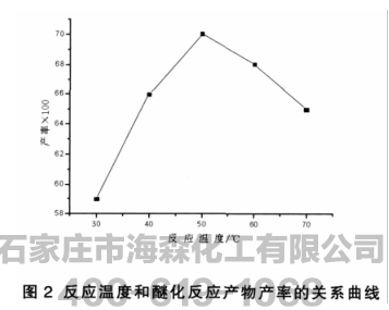 从图2中可以看出,当反应温度为60℃时,醚化产物产率最高。当反应温度低于60℃时,产物产率随着温度的升高而增大,温度过低则会使反应体系获得能量不足,影响反应速率和产率。反应温度高于60℃时,产率则出现下降趋势。过高和过低的温度都不利于反应的进行,因此在实验中选用温度60℃为宜。