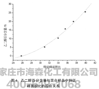 以样品中乙二醇百分含量作为Y轴,特征峰面积比为X轴,利用Origin软件作图,见图2。