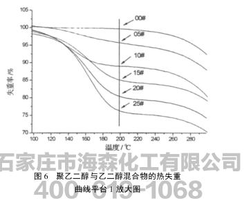 聚乙二醇中乙二醇单体含量的变化,其热失重曲线也发生较大的变化,在温度约200~300?乙二醇单体失重变化(实际为乙二醇的挥发量)形成平台1,400~600?为