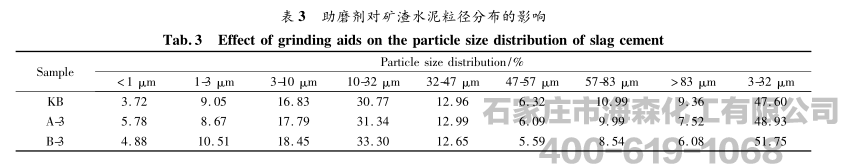 3.1助磨剂对矿渣水泥颗粒特性的影响