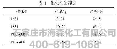 根据表1中数据可知,PEG-400的催化效果最好,因此,选择PEG-400作为本实验的催化剂。