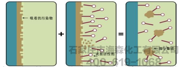 由于阳离子表面活性剂会产生静电吸附,导致表面活性剂的疏水基向着水溶液,分散后的污垢容易再沾污到织物表面,这样对于织物净洗极为不利。因而,作为洗涤用的表面活性剂多用非离子、阴离子和两性离子[4]。其中十二烷基苯