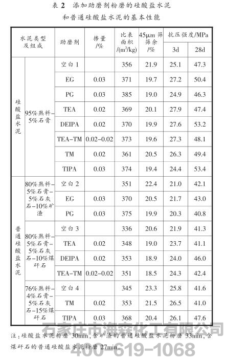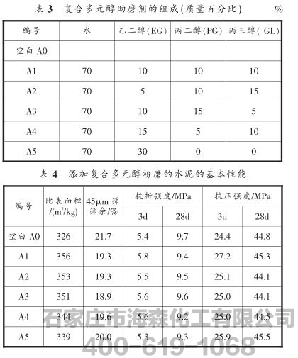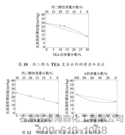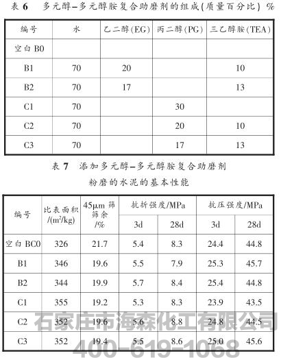 三异丙醇胺)的助磨效果较好,糖蜜(TM)和