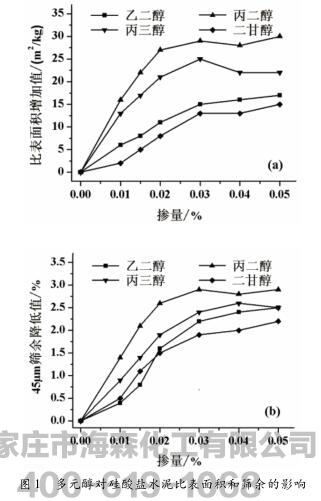 2.1.1多元醇对硅酸盐水泥比表面积和筛余的影响