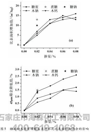 2.1.3糖蜜、木钠、木钙对硅酸盐水泥比表面积和筛余的影响