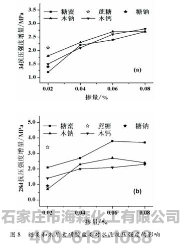 2.3.3糖类和木质素磺酸盐类对水泥抗压强度的影响
