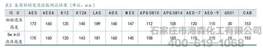 6501,泡沫高度只有30mm,在实际应用中常用作抑泡剂。在实际应用中,应根据产品的具体需求来控制洗涤产品的泡沫量,选择合适的表面活性剂进行复配。