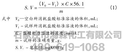 从三口瓶中取2份反应物试样,分别测酸值和皂化值,确定反应进行的程度。通过比较扣除酸值后的皂化值来确定反应物配比、反应温度和反应时间。