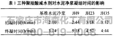 表1是JHg、JH23、JH35三种自制聚梭酸减水剂掺量分别为水泥质量的.05%时,在相同稠度下所测得的水泥净浆凝结时间从该表可知,自制的三种聚梭酸减水剂对水泥净浆均有一定的缓凝效果,其原因是减水剂中醋基与CaZ十作用形成了络合离子,降低了水泥净浆中钙离子浓度,延迟了Ca(OH)2结晶,减缓了C一S一H凝胶的形成,从而延缓了水泥水化,使凝结时间延长.