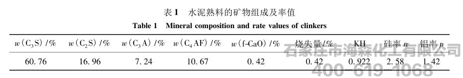 三异丙醇胺(TIPA)。熟料及二水石膏,熟料矿物组成及石灰石饱和系数(KH)见表1。