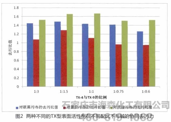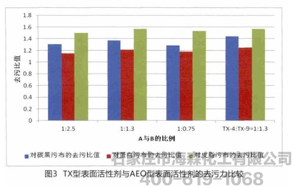 2.1.3AEO型与TX型表面活性剂的去污力比较