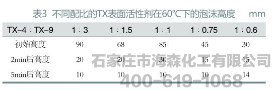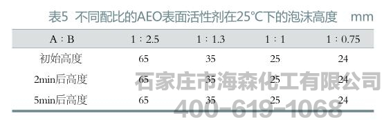 从表5、表6、表7发现,AEO类表面活性剂的泡沫现象与TX类的类似。