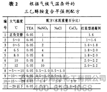 三乙醇胺复合早强剂。其配方如表l、表2。
