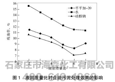 2.1 液固质量比对含油污泥处理效果的影响