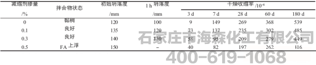 表8减缩剂对混凝土性能的影响