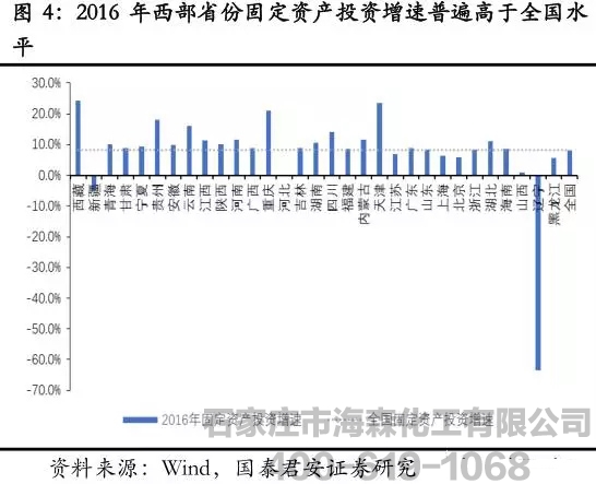 2016年新疆固定资产投资完成额为9984亿元,同比下降5.1%。但这可能与2016年8月自治区党委换届导致的投资预期不稳定有关,1-7月累计增速逐月增加至7.5%,8月以后累计增速下行,其中四季度实际当季同比-35%。