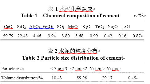 水泥由95%的北京水泥厂生产的熟料和5%的天然石膏混合,在实验室粉磨制得。表 1 给出了通过 X