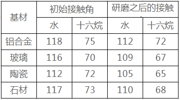 上述数据采集过程如下:各种基材均采用刷涂方式处理,测量静态接触角。经具有研磨清洁剂和擦拭物循环擦拭3500次,再测量静态接触角。
