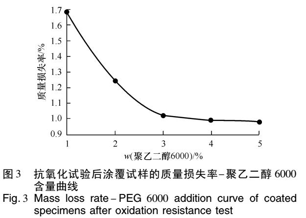 聚乙二醇 6000 加入量的增加,涂覆试样的质量损失率逐渐减小; 但