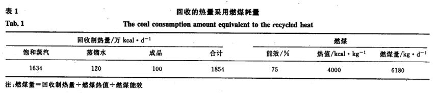 聚乙二醇回收的可利用热量合计为1854万kcal·d~,若全部采用燃煤代替热量,相当于每天节省6180kg,每年以350 d计算,可为企业节省燃煤2163 t,以每吨煤价(运输、堆放产地、人工等费用)580元市价计算,相当于每年可为企业节省125.45万元的开支。