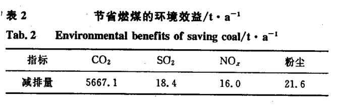 由表2可知,由于余热回收利用一年可以节省燃煤2163 t,避免了燃煤会造成的大量有害气体、粉尘的排放,带来了可观的环境效益,符合国家的节能减排政策。