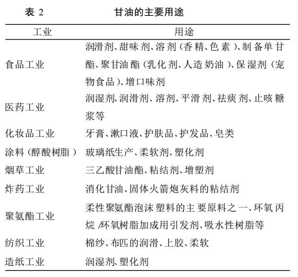 甘油有其传统的应用领域。随着经济的发展及人民生活状况的改善, 我国对