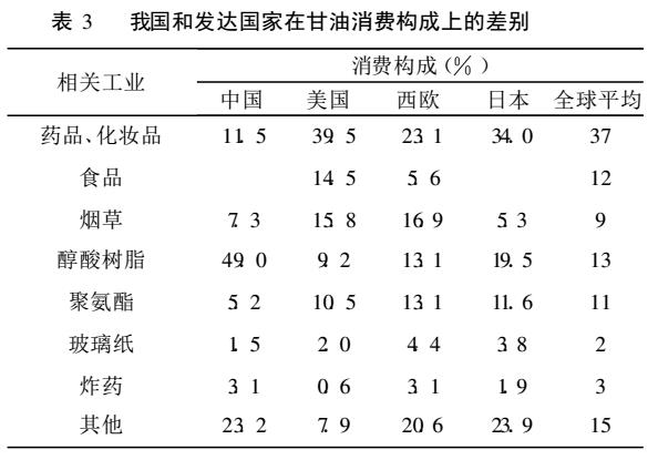 甘油以满足国内市场需求。海关总署公布的 2003 ~ 2006年间中国