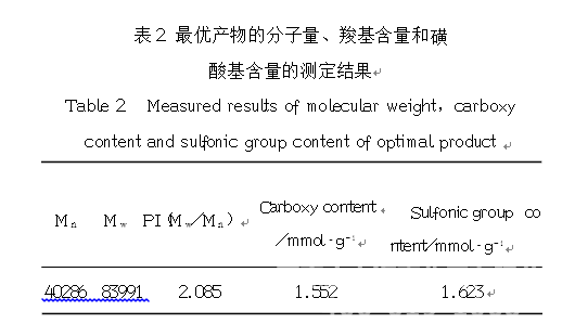 分别利用凝胶渗透色谱仪和自动电位滴定仪测定最优聚羧酸产品的分子量、羧基含量和