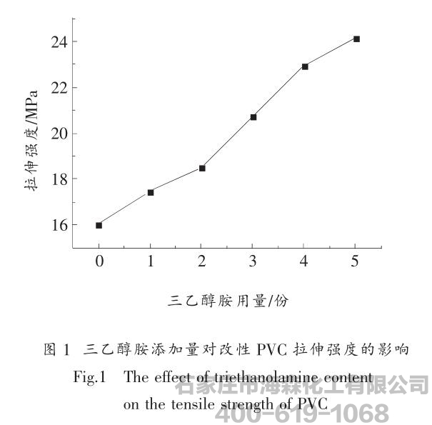 三乙醇胺添加量与改性PVC拉伸强度的关系图(见图1)。