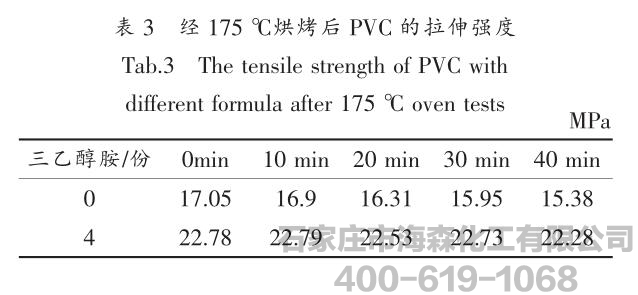 三乙醇胺没有从PVC分子链上脱落下来,所以在一定程度上阻止了PVC的脱氯反应,表现为热稳定性的提高。