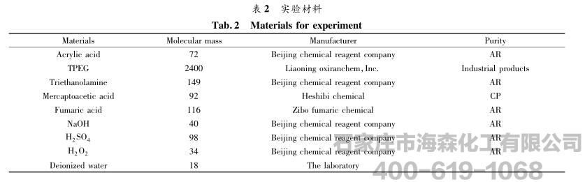 三乙醇胺与减水剂以及水泥的协同作用和适应性做过不少研究。醇胺类物质作为水泥助磨剂的研究较多,但作为减水剂侧链的研究却较少。本文通过自由基共聚反应合成了一种具有