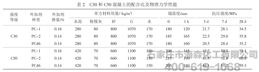 采用2个不同强度等级(C30和C50)混凝土的配合比进