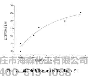 以样品中乙二醇百分含量作为Y轴,特征峰面积比为X轴,利用Origin软件作图,见图2。