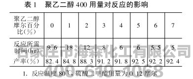 聚乙二醇、硫酸二甲酯的用量和反应温度对反应所需时间及产率有显著影响。